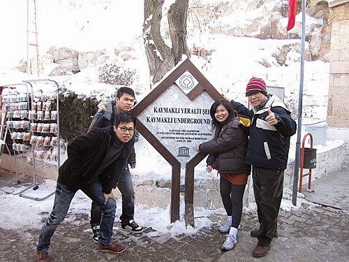 1965年開放,1985年成為世界文化遺產。西台文化的崛起,地下城就開始有了雛形,可能是利用洞穴來捕抓動物。後來基督教徒為抵禦羅馬軍隊(多神教)和阿拉伯軍隊更巧妙的運用地下城。小小窄窄的通道分割了許許多多的房間,有的儲藏食物、酒窖、畜舍、教堂….、(大大時可能就得用夜壺吧!)甚至還有墳墓。狹窄而複雜的通道只容一人進出,地面到地底約85m的垂直通氣孔和空氣循環系統,可以讓最底層根最上層的空氣一樣清新。而利用槓桿原理推動2噸重的厚圓石門..等設施,更令人讚嘆!
