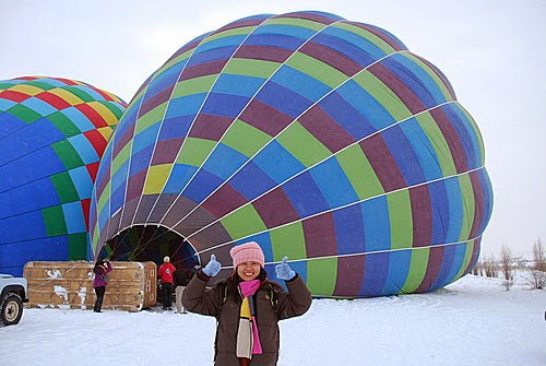 想不到飄著雪,我們依然能坐上熱汽球冉冉升空,感動!!