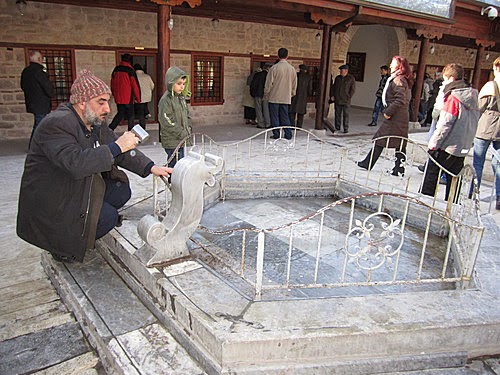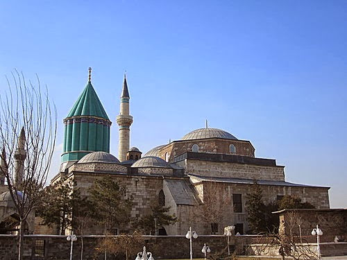 中庭的水池過去是提供苦行僧侶淨身,笛子般的尖塔及塔身所覆蓋的藍綠色磁磚下就是梅夫拉納的陵寢,入口的左手邊有一個大的銅碗,稱作四月的碗,裡面放著四月春天的雨水並浸著梅夫拉納的頭巾,據說對病痛有療效。